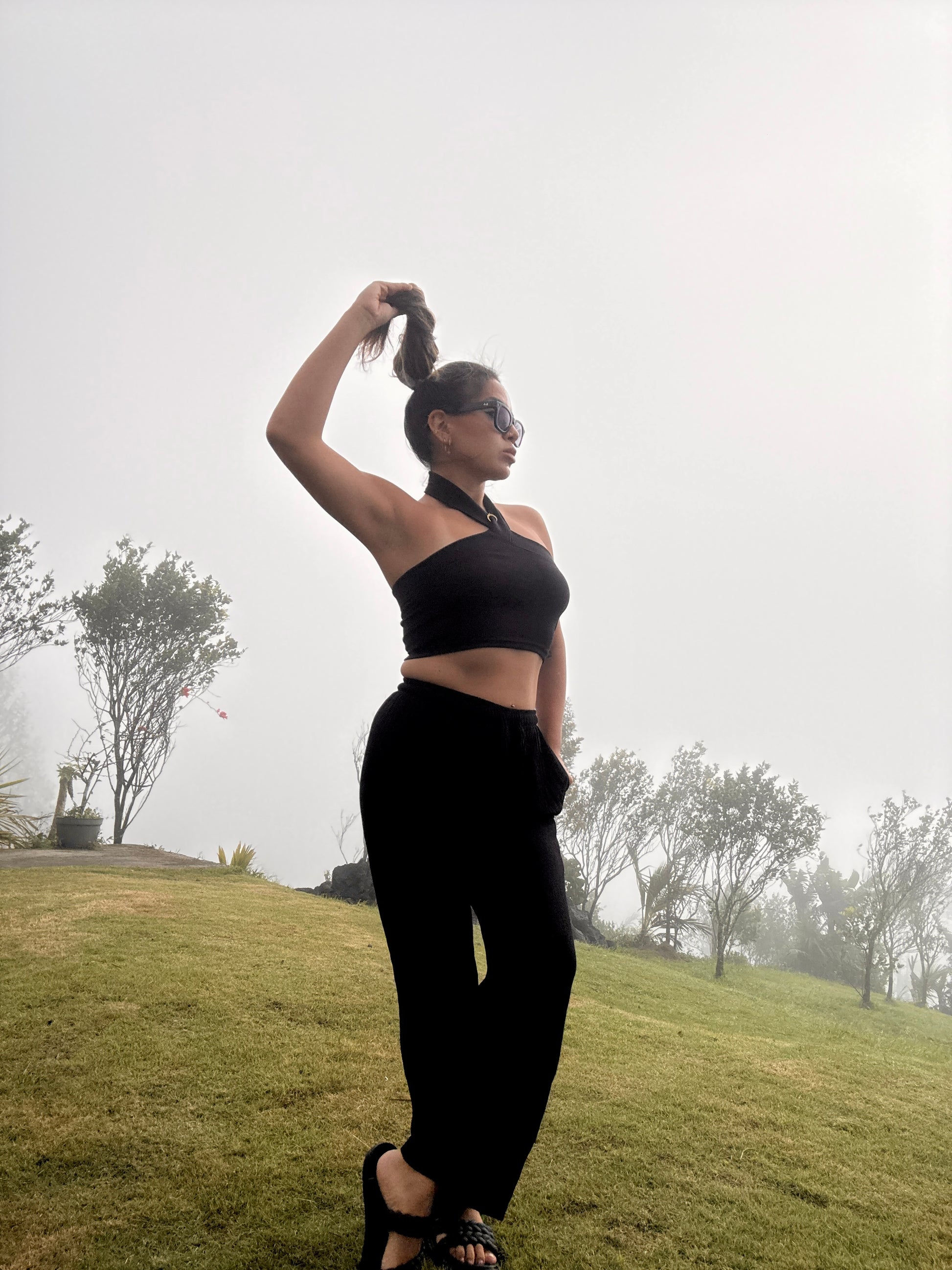 Experience outer space in ASTRO aka “star” top ⭐️ This fitting, breathable crop top features a wrap around your neck accentuating your shoulders and the star of you, Your face! Pair this with the RELAX pant.