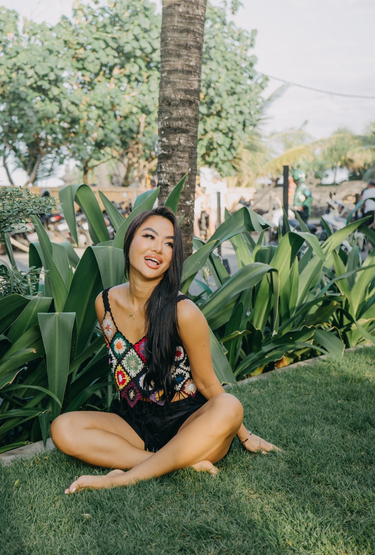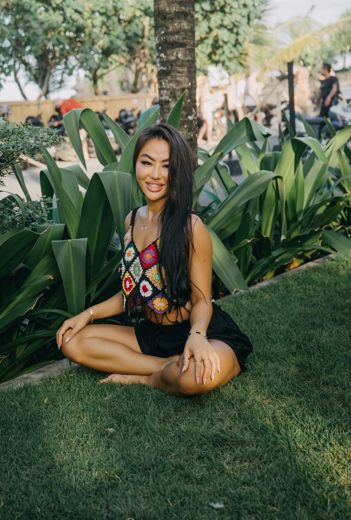 Represent the Welcoming nature of Bali with this 2 piece set! Meaning “You’re Welcome” to express Thank You! This 2-piece set features a black, multicolored knit top and a double pocket short to complement the comfort of this set